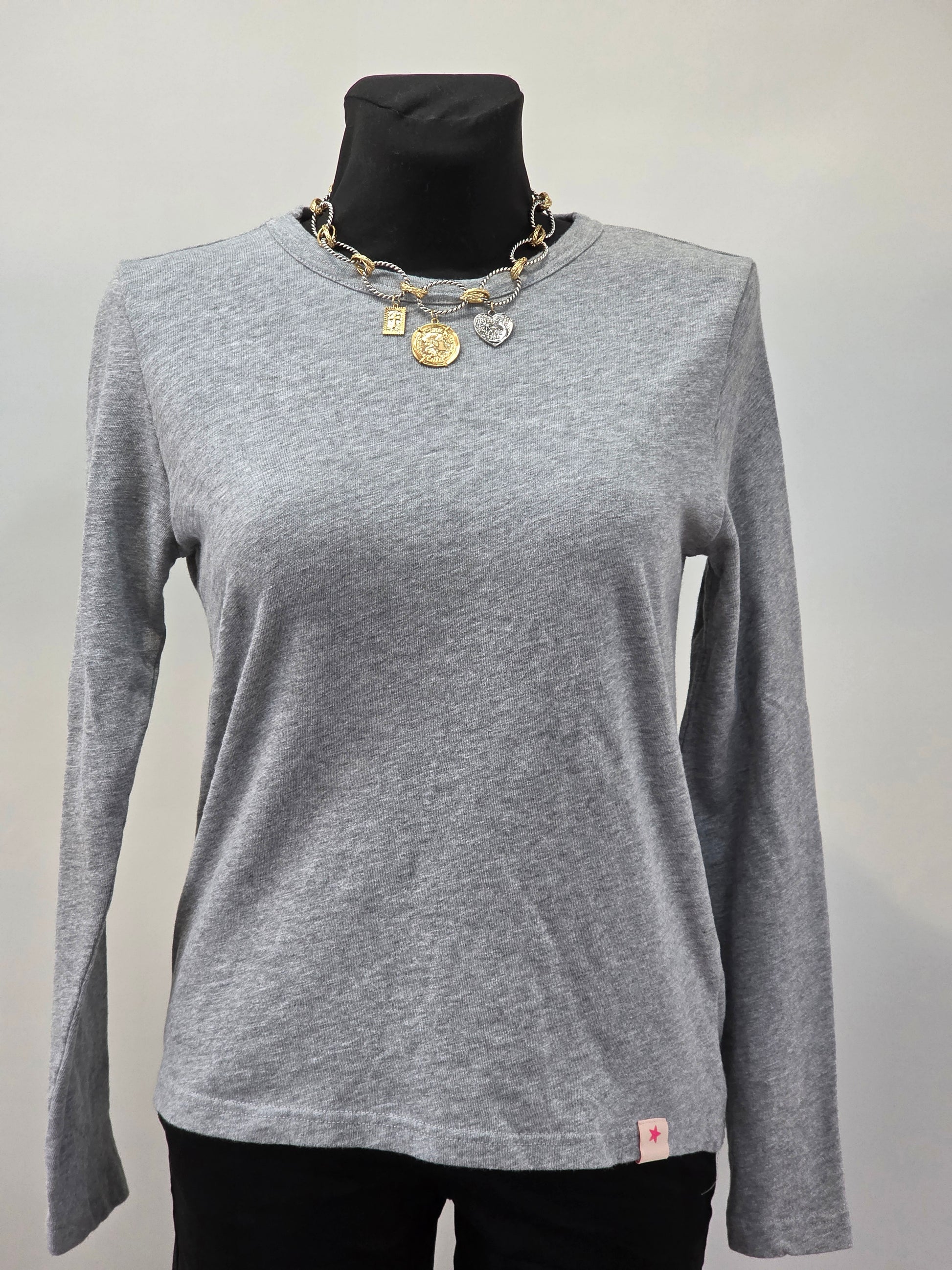 Dieses graue T-Shirt vereint zeitlosen Stil mit höchstem Tragekomfort. Gefertigt aus weicher Bio-Baumwolle, fühlt es sich angenehm auf der Haut an und bietet dir ein natürliches, atmungsaktives Tragegefühl – den ganzen Tag über.