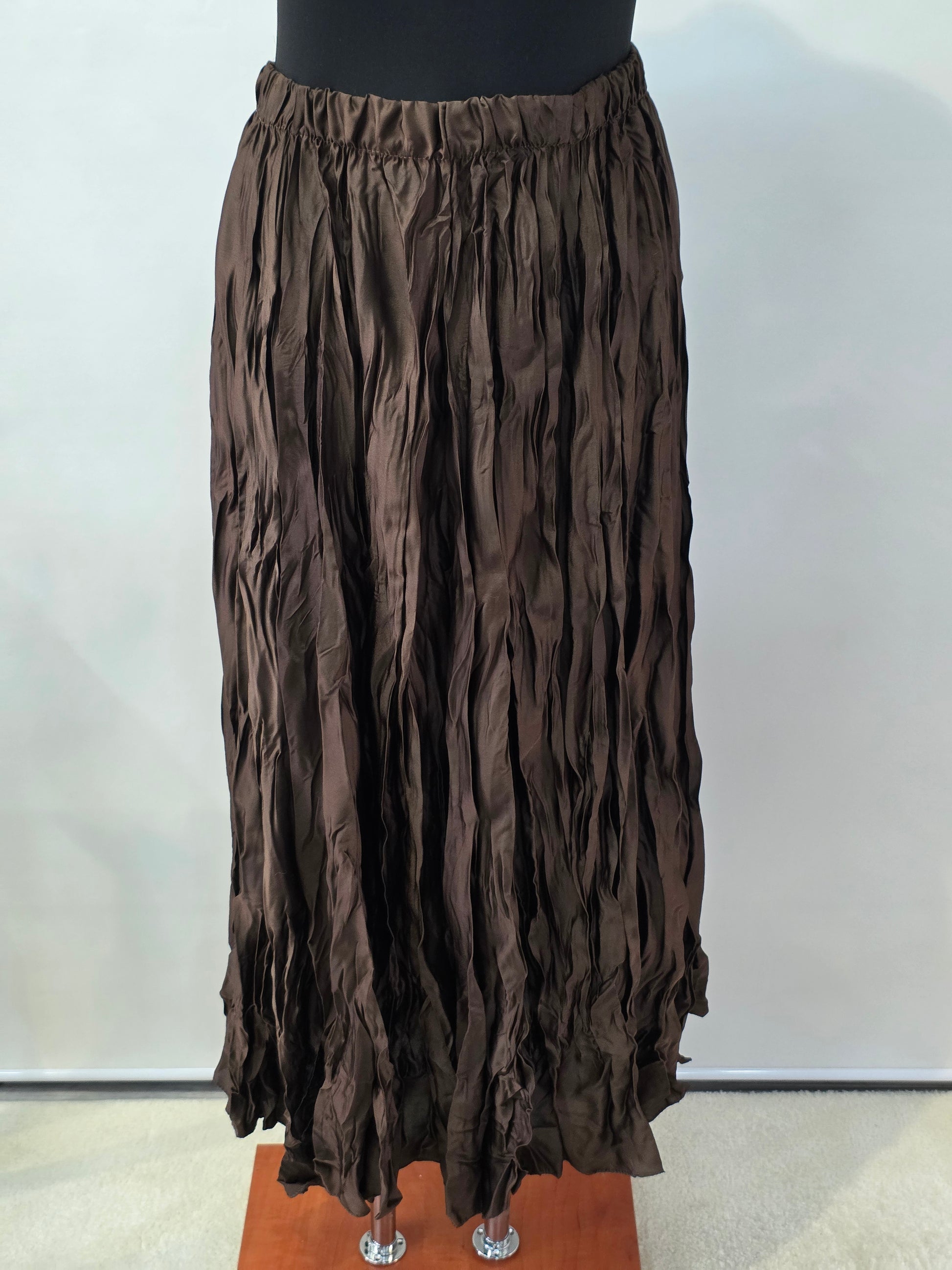 Dieser knöchellange Crinkle-Rock ist ein echtes Highlight für vielseitige Outfits. Der shiny Stoff aus 100 % Polyester sorgt für einen fließenden Fall und zaubert eine wunderschöne Silhouette, die die Figur perfekt in Szene setzt. Ob schick mit Bluse und Absatzschuhen oder leger mit T-Shirt und Sneakers – dieser Rock lässt sich nach Lust und Anlass kombinieren. Besonders cool wirkt er auch zu derben Boots, die dem glänzenden Material einen spannenden Kontrast geben. Ein Fashion-Piece, das jede Garderobe bereichert und sowohl im Alltag als auch zu besonderen Anlässen überzeugt.