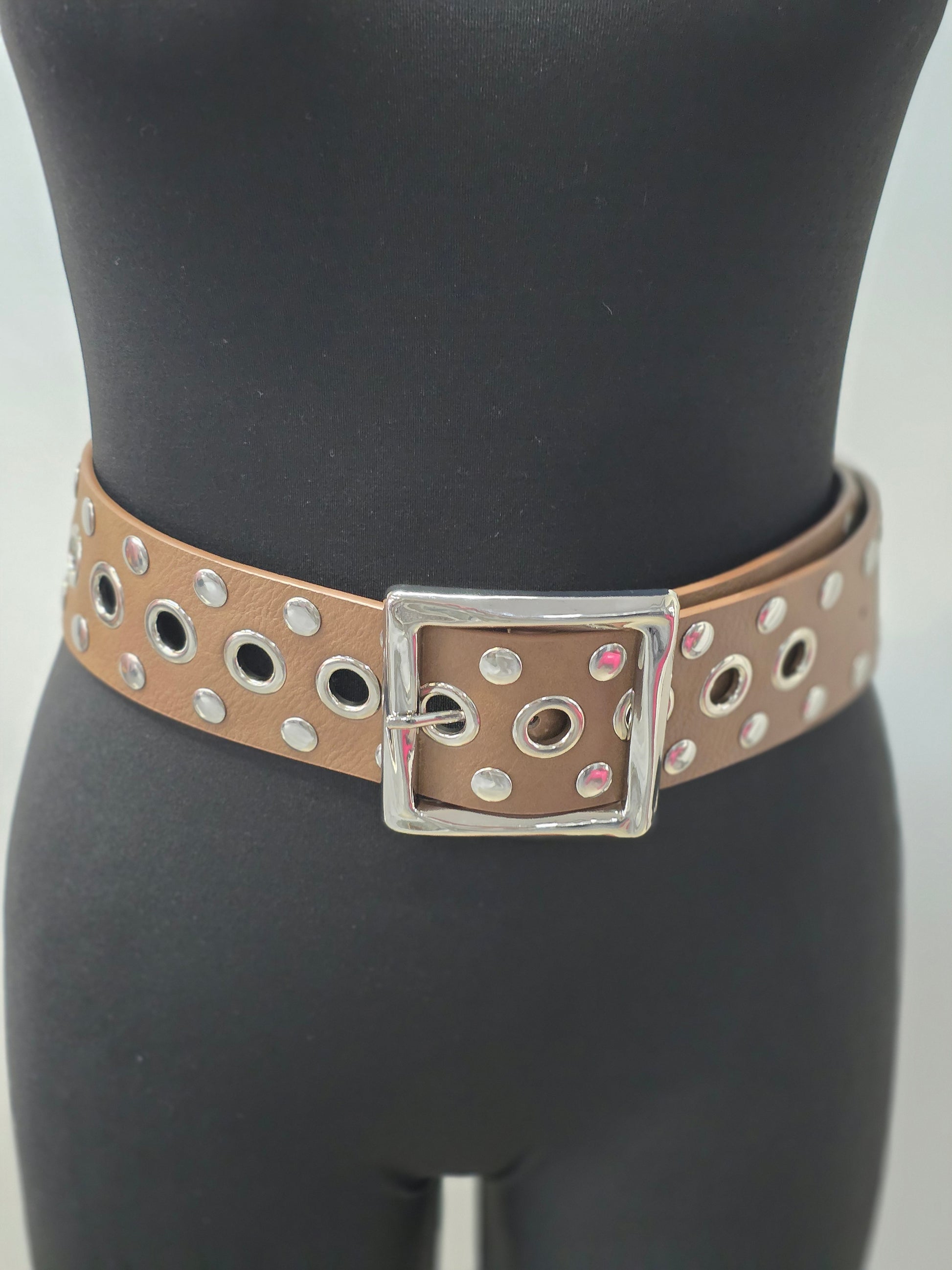 Nietengürtel Beige-Silber – Mega-Cool & Stylisch