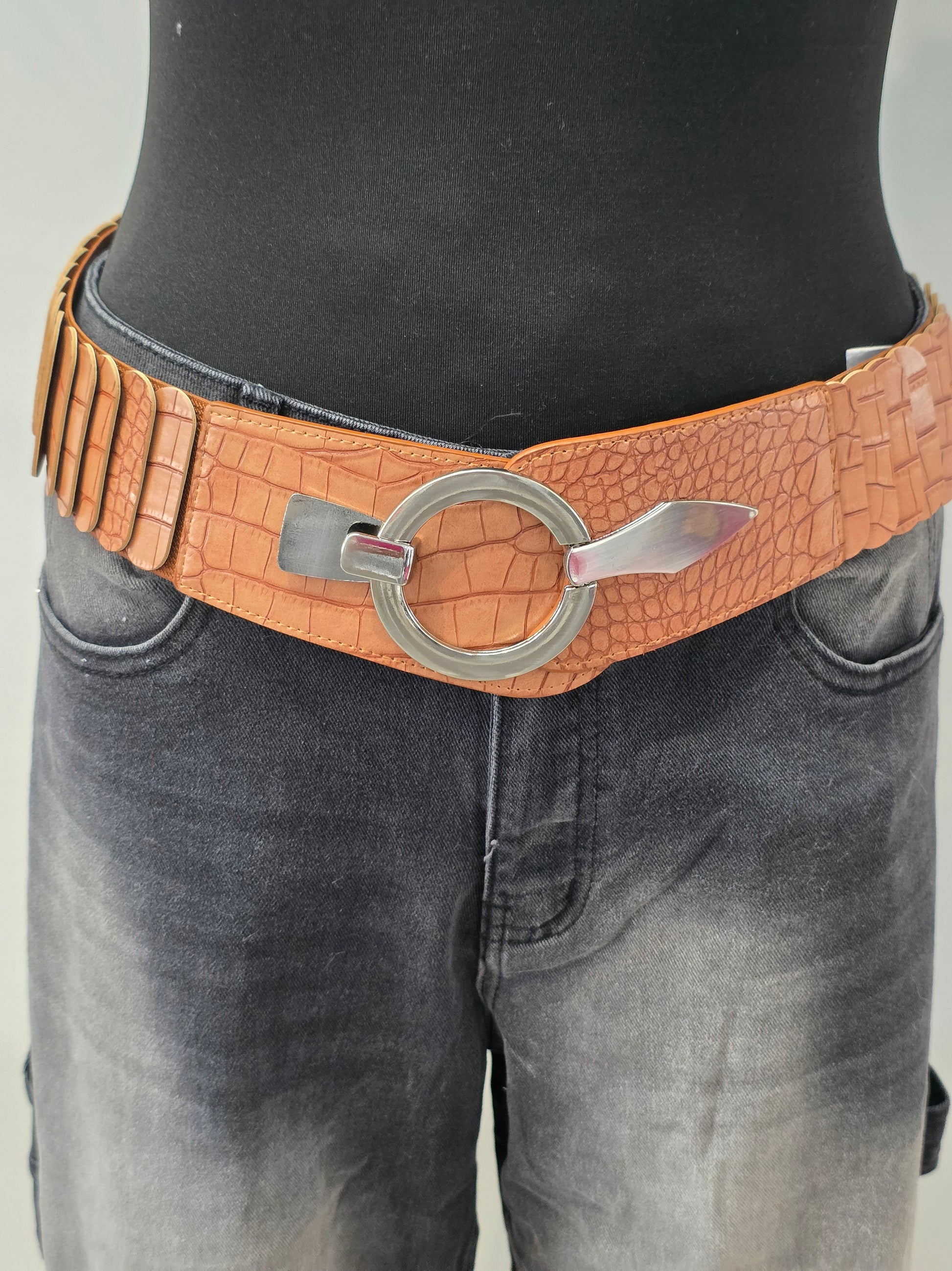 Aufwendig gearbeiteter Gürtel in Cognac – mit Gummizug & besonderer Schnalle
