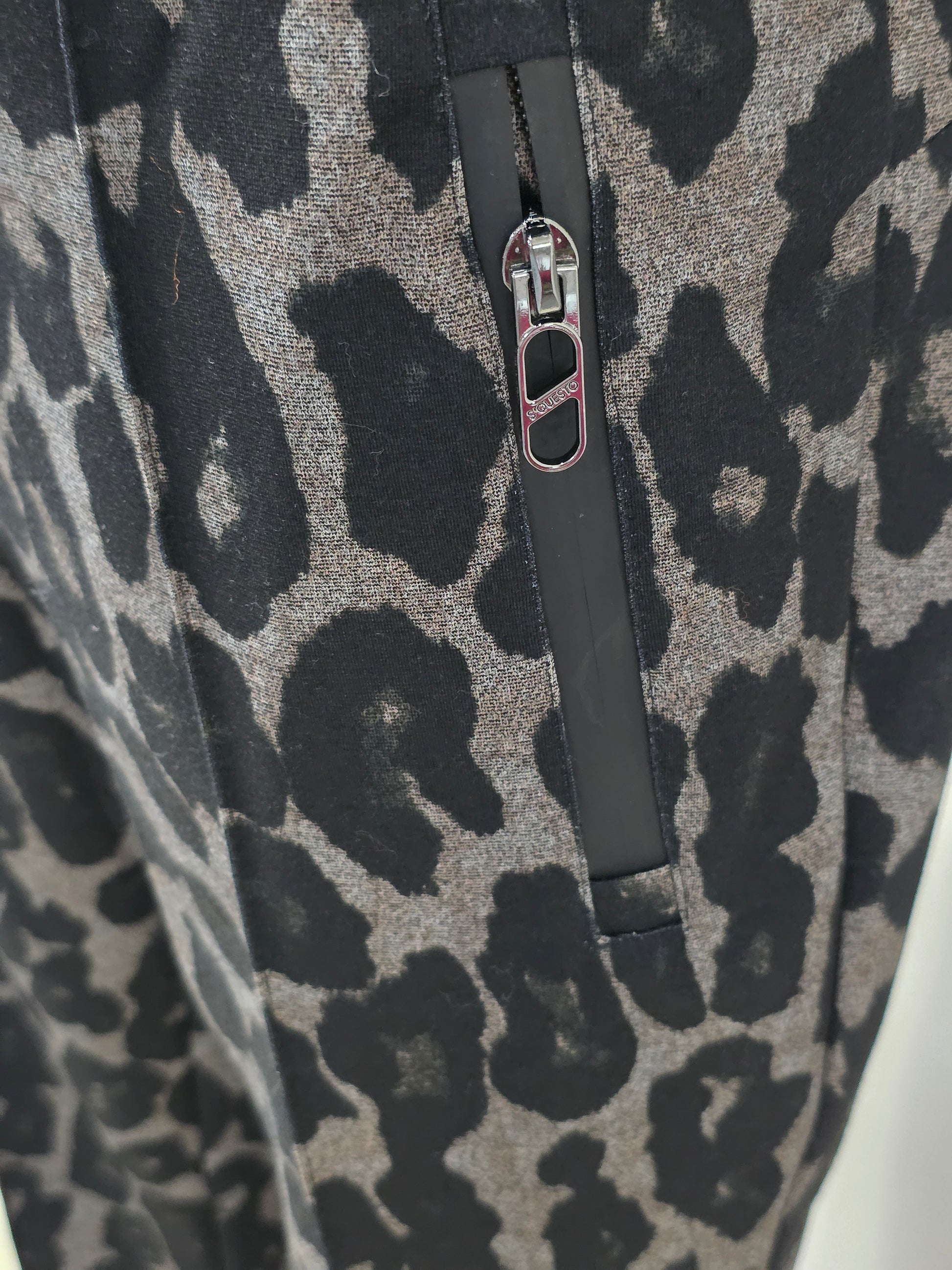 Diese Leohose in Taupe-Schwarz ist ein absolutes Must-have für alle Leo-Fans! Der schmale Schnitt sorgt für eine feminine Silhouette, während das angenehme Material höchsten Tragekomfort bietet. Besonders praktisch: zwei seitliche Eingrifftaschen, die sich mit einem verdeckten Reißverschluss schließen lassen.