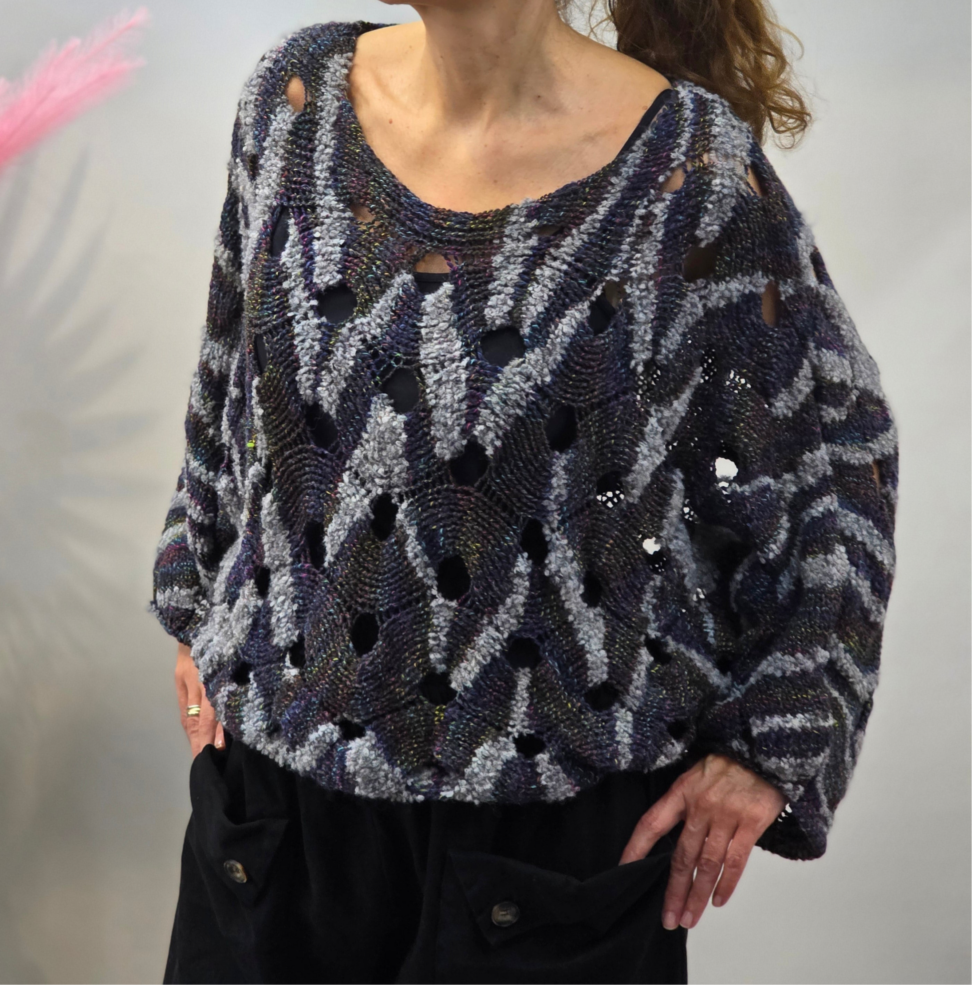 🧶 Pullover mit Lochmuster und Schmetterlingsärmeln