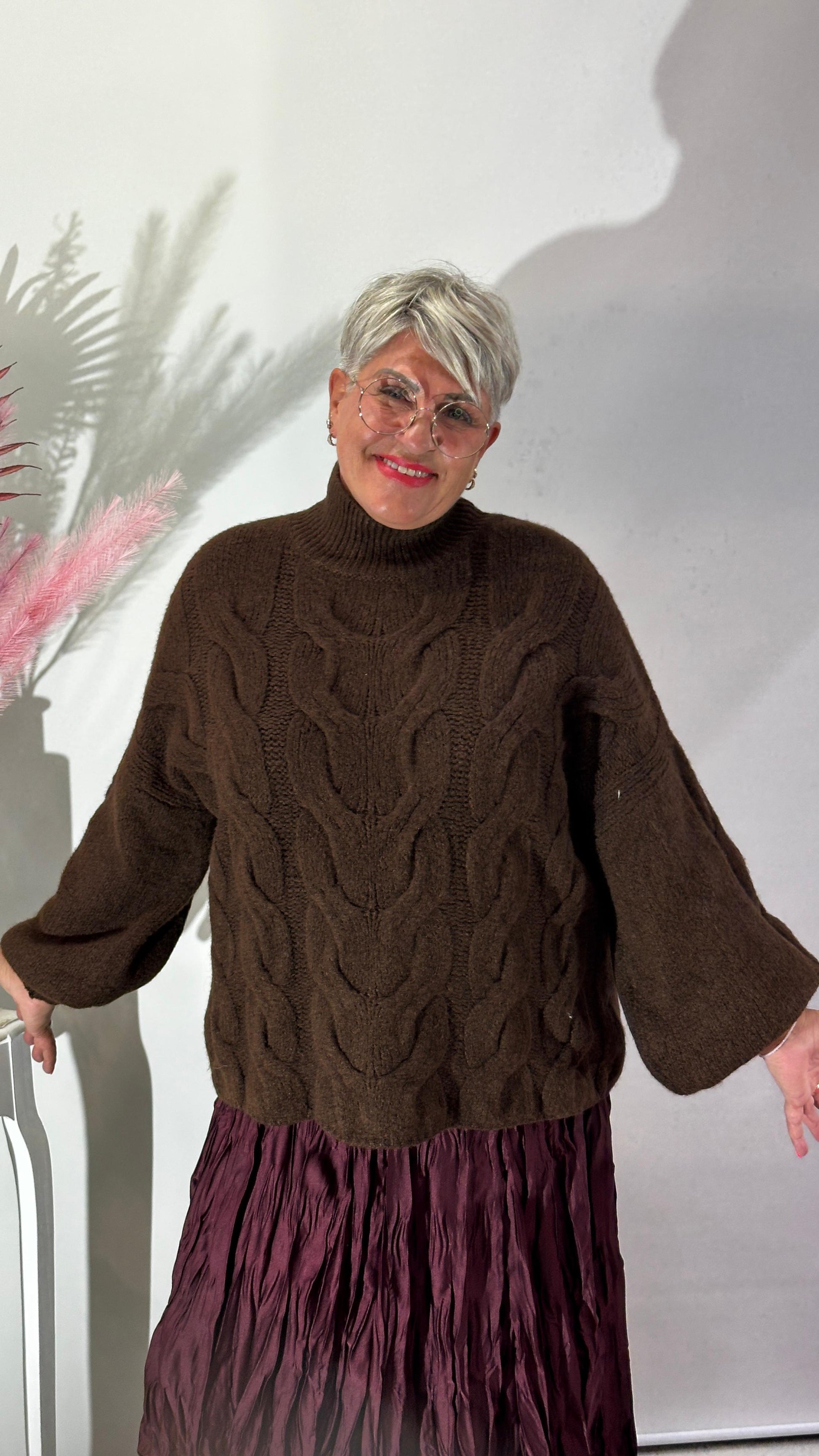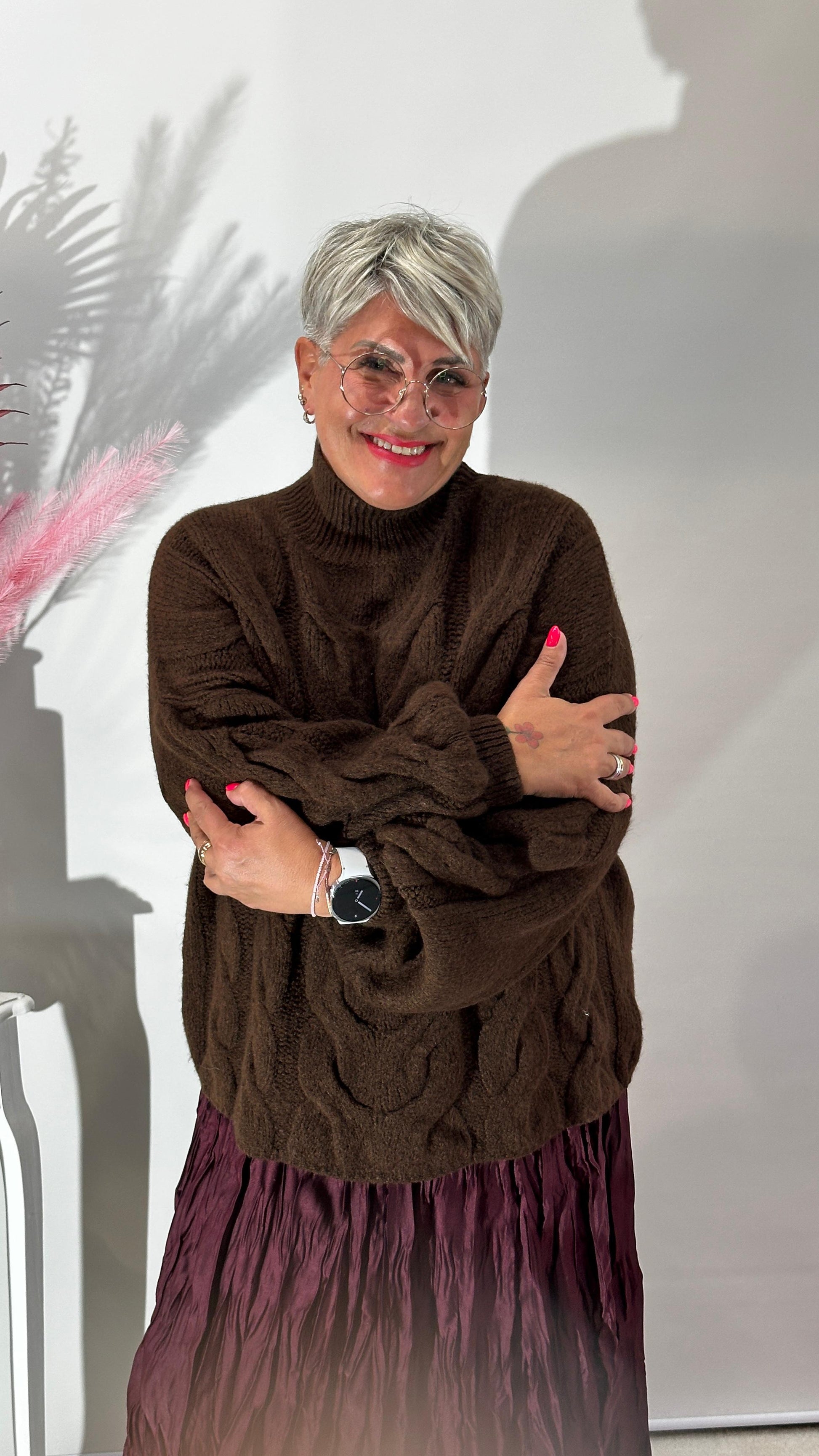 Dieser Pullover ist ein echtes Wohlfühlteil für kalte Tage: superweich, angenehm kuschelig und besonders warm. Der trendige Schildkrötkragen schützt zusätzlich vor Kälte, während das schöne Zopfmuster auf der Vorderseite für einen stilvollen Look sorgt.