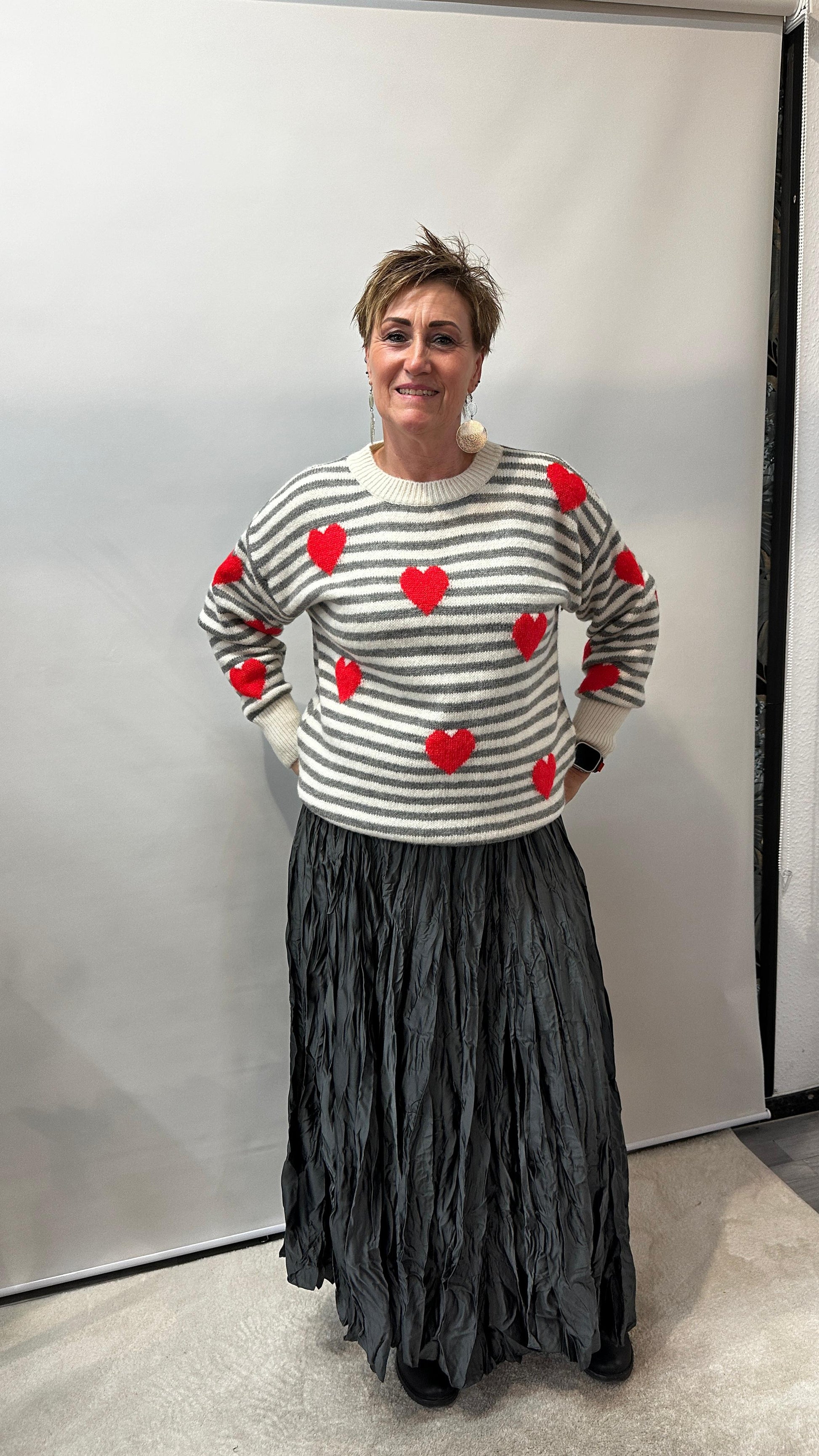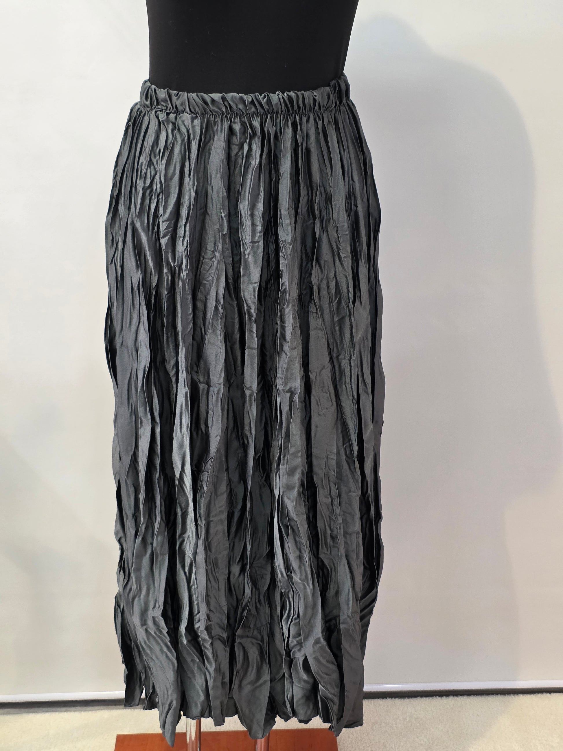 Dieser knöchellange Crinkle-Rock ist ein echtes Highlight für vielseitige Outfits. Der shiny Stoff aus 100 % Polyester sorgt für einen fließenden Fall und zaubert eine wunderschöne Silhouette, die die Figur perfekt in Szene setzt. Ob schick mit Bluse und Absatzschuhen oder leger mit T-Shirt und Sneakers – dieser Rock lässt sich nach Lust und Anlass kombinieren. Besonders cool wirkt er auch zu derben Boots, die dem glänzenden Material einen spannenden Kontrast geben. Ein Fashion-Piece, das jede Garderobe bereichert und sowohl im Alltag als auch zu besonderen Anlässen überzeugt.