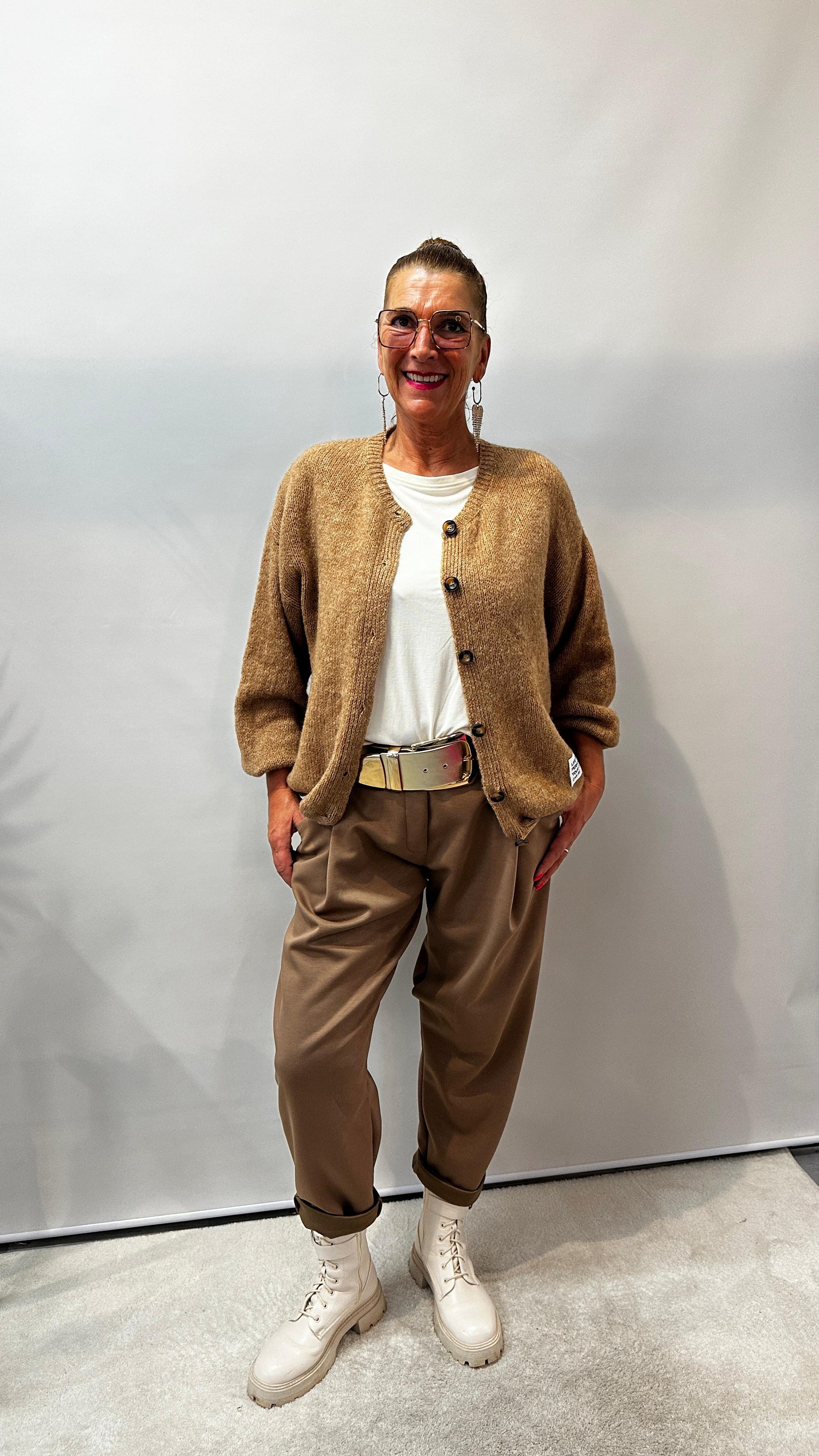 Diese Strickjacke ist der perfekte Begleiter für gemütliche und stylishe Looks. Hergestellt aus einer hochwertigen Mischung aus 38 % Lana, 36 % Acryl und 18 % Polyester, ist sie angenehm weich, schön warm und fühlt sich toll auf der Haut an. Mit einem AA-Maß von 70 cm passt sie locker von Größe 36 bis 46 und überzeugt durch ein süßes Detail: einen kleinen Sticker an der Seite, der dem klassischen Design einen charmanten Akzent verleiht. Ob als leichte Jacke über einem Top oder T-Shirt getragen oder einfach zum Einkuscheln an kühlen Tagen – diese Strickjacke verbindet Komfort und Stil mühelos.