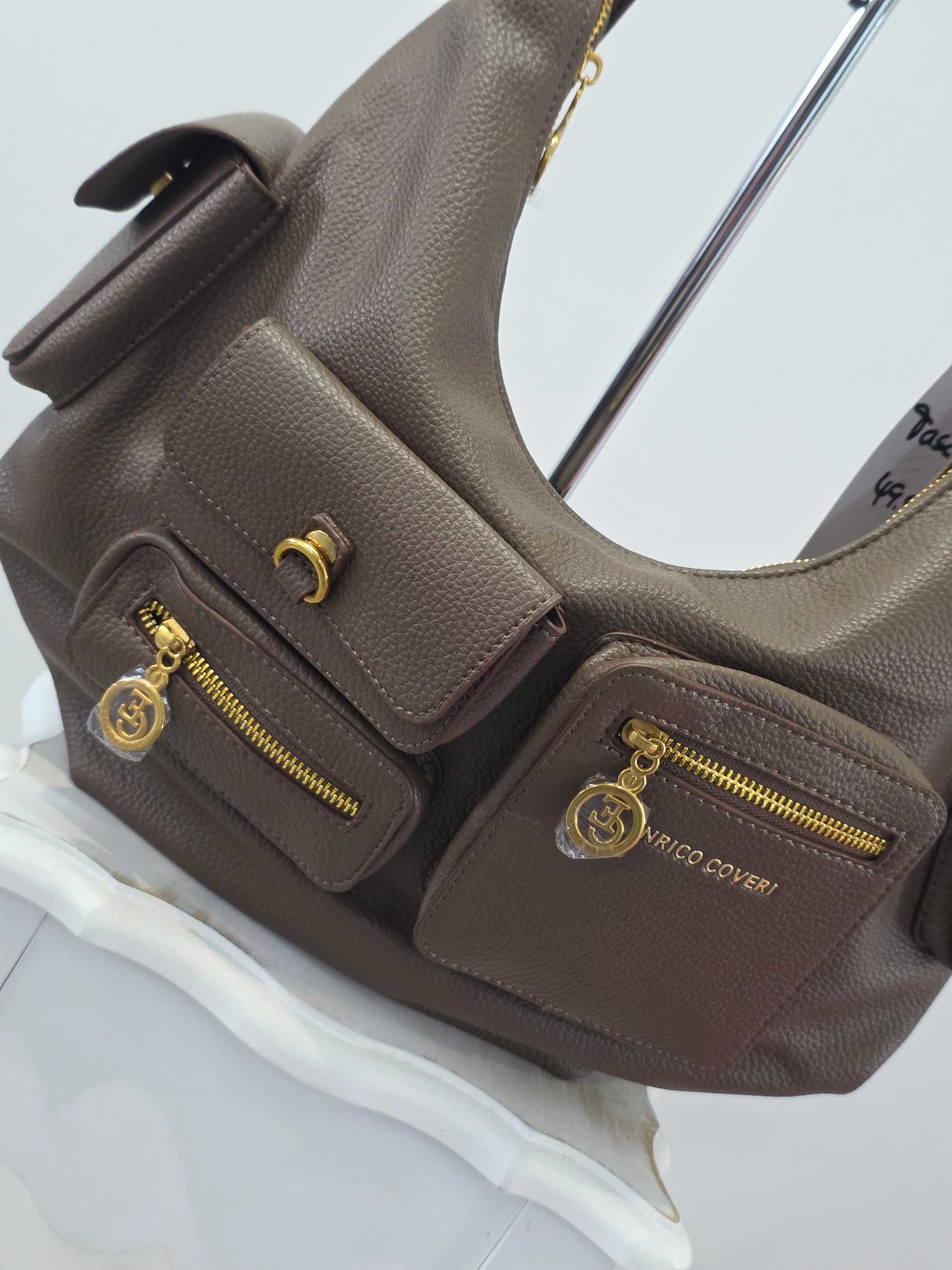 Mehrere Außentaschen bieten ausreichend Platz für deine wichtigsten Dinge und sorgen für eine gute Organisation unterwegs. Der verstellbare Umhängegurt ermöglicht es, die Tasche ganz bequem als Crossbody zu tragen – ideal für lange Tage, Reisen oder den Stadtbummel.