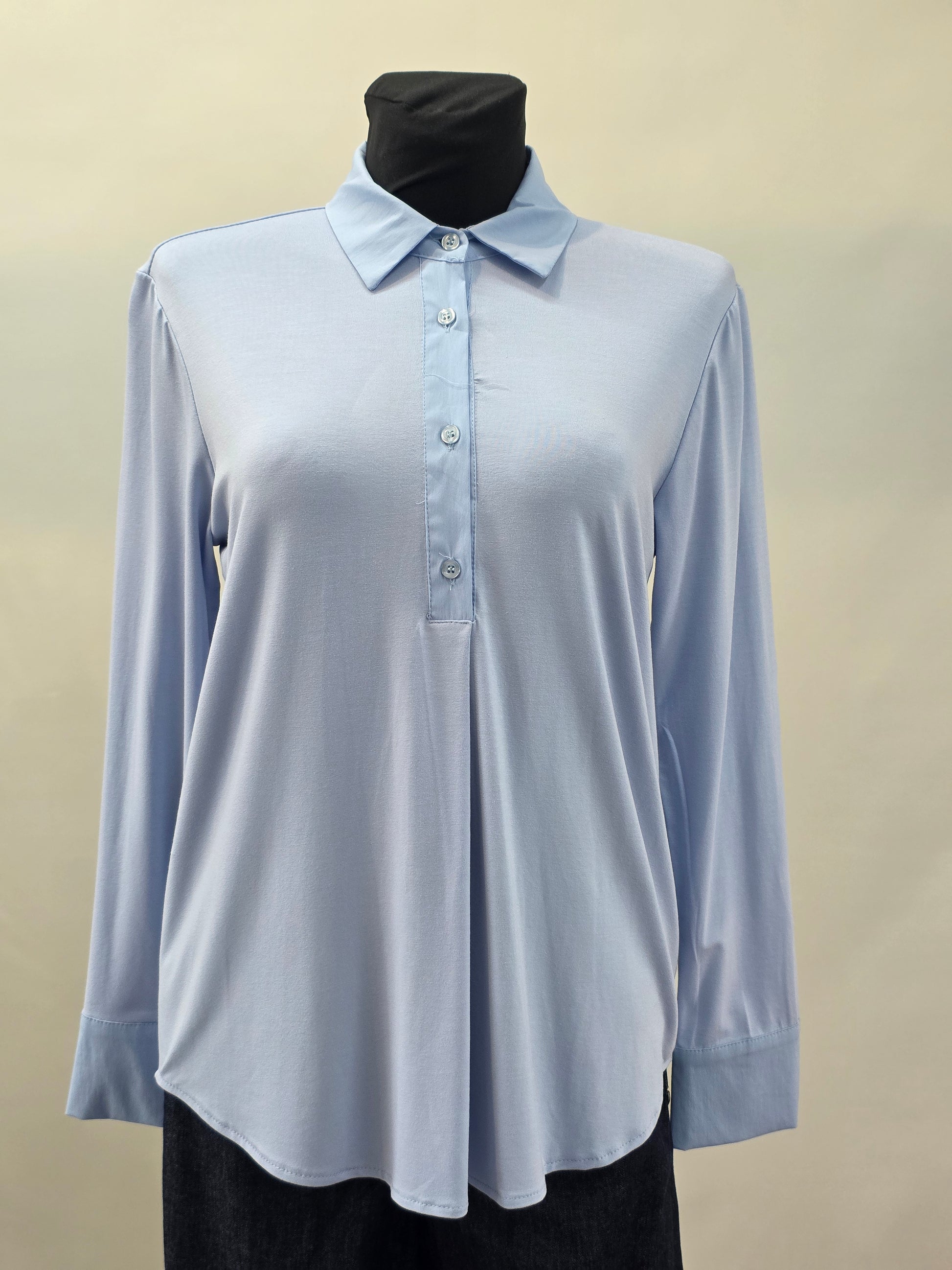 Diese hellblaue Hemdbluse vereint zeitlose Eleganz mit moderner Vielseitigkeit. Durch den hochwertigen Stoffmix aus 66% Baumwolle, 26% Nylon und 5% Elastan sitzt sie angenehm auf der Haut, bleibt formstabil und bietet optimale Bewegungsfreiheit. Ihre klare Linie macht sie zu einem perfekten Begleiter im Büro, lässt sich aber ebenso leger unter einem Pullover kombinieren oder solo tragen für einen frischen, stilvollen Auftritt. Ein Stück, das sowohl klassisch als auch modern wirkt und in jeder Garderobe seinen Platz findet.